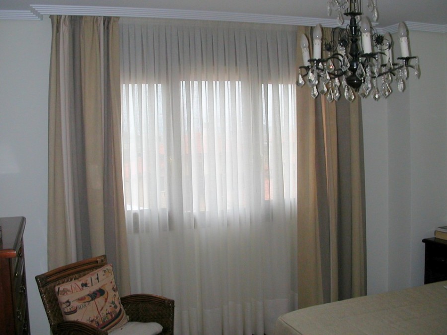 Ejemplos de variantes en la confección de los visillos, a tablas o fruncidas, así como en la instalación, barras o rieles.